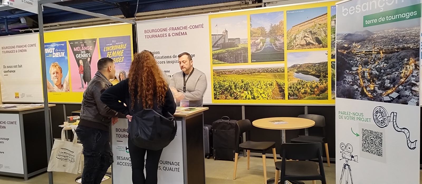 Notre partenaire Grand Besançon Métropole, investi et pro-actif dans une démarche d’attractivité des tournages sur leur territoire, était présent à nos côtés sur le stand pendant les deux jours.