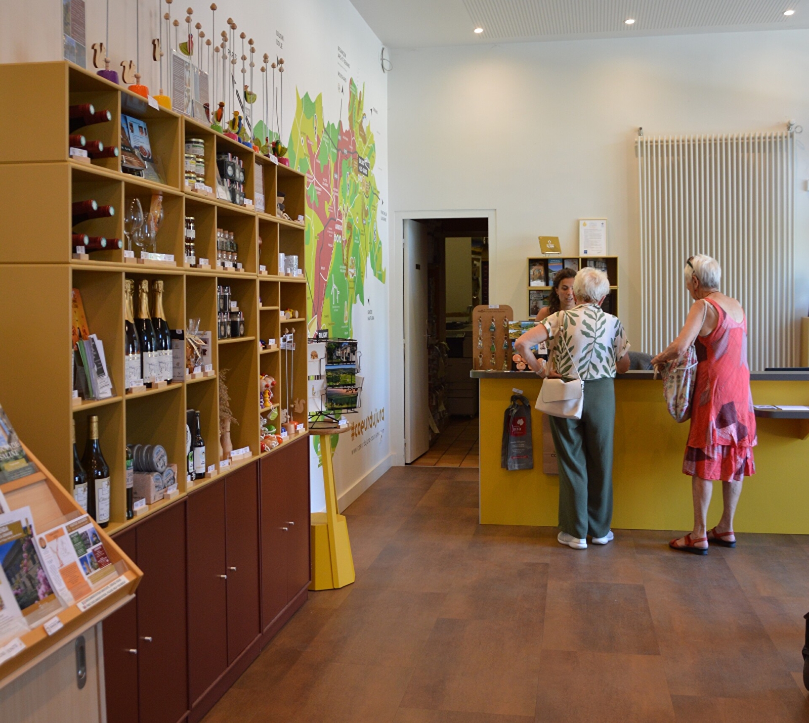 En boutique, vous trouverez des produits locaux (cartes postales, magnets, produits gourmands et bien-être) et le cartoguide de notre territoire (600km de randonnée).